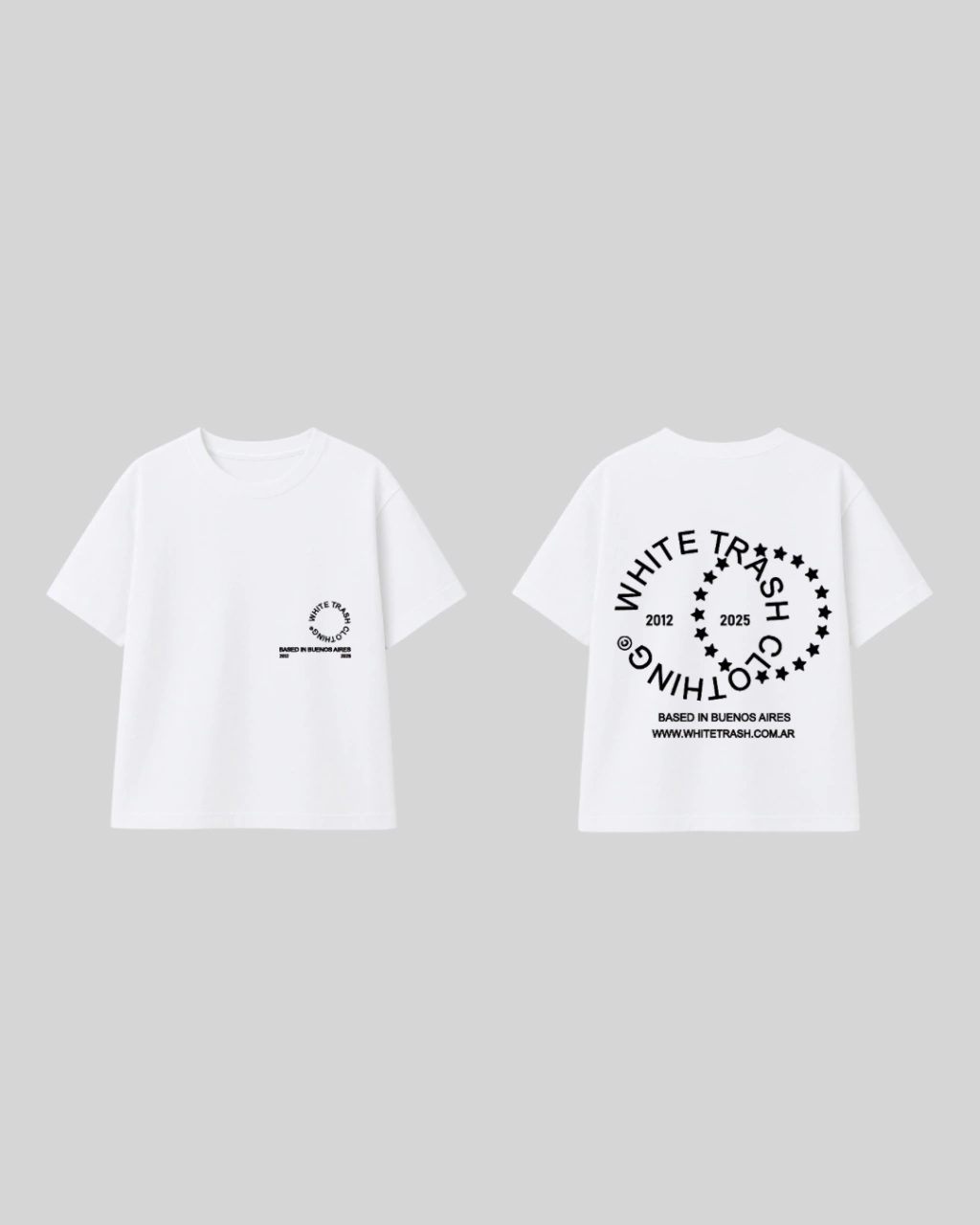 Remera de algodon 20/1 con estampa en frente y dorso. Corte boxy fit.